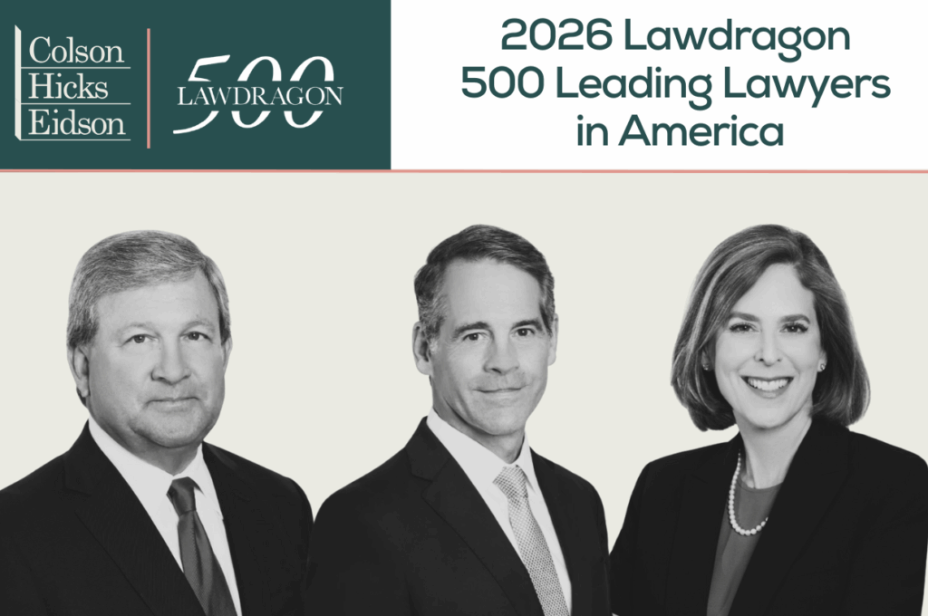 Colson Hicks Eidson is a renowned law firm based in Miami, Florida, that is recognized as one of the top trial firms in the United States. Built on a foundation of over 50 years of dedication forging strong client relationships, Colson Hicks Eidson handles local, national, and international litigation, with cases spanning from Miami, Florida, and throughout the United States, to matters in the Caribbean, Central America, South America, and Europe. Learn more at: www.colson.com.